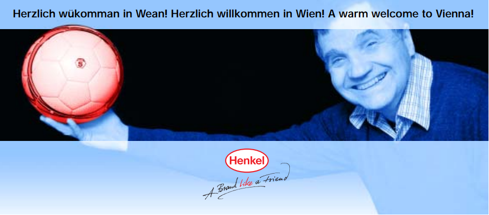 48 Seiten stark ist die Hommage von Henkel an Wien, wo Henkel-Produkte seit über 120 Jahren erhältlich sind und seit 80 Jahren in Erdberg ein Werk betrieben wird. In 21 Szenen wird der Fußballfan durch Wien begleitet – von der Ankunft über die Hotelsuche, beim Anfeuern im Stadion, am Würstelstand, beim Flirten bis hin zum Abschied. Jede Szene beinhaltet zehn dazu passende Redewendungen – auf Weanerisch, Deutsch und Englisch – sowie jeweils eine Karikatur des Künstlers Hans Gramm.